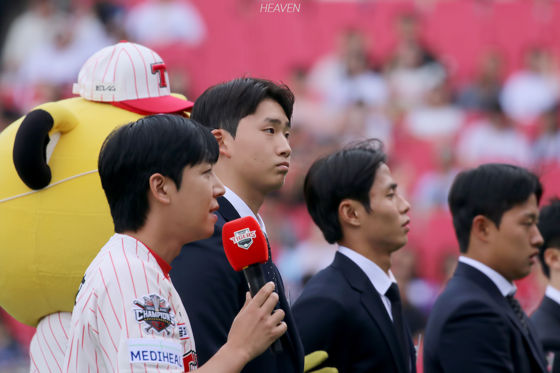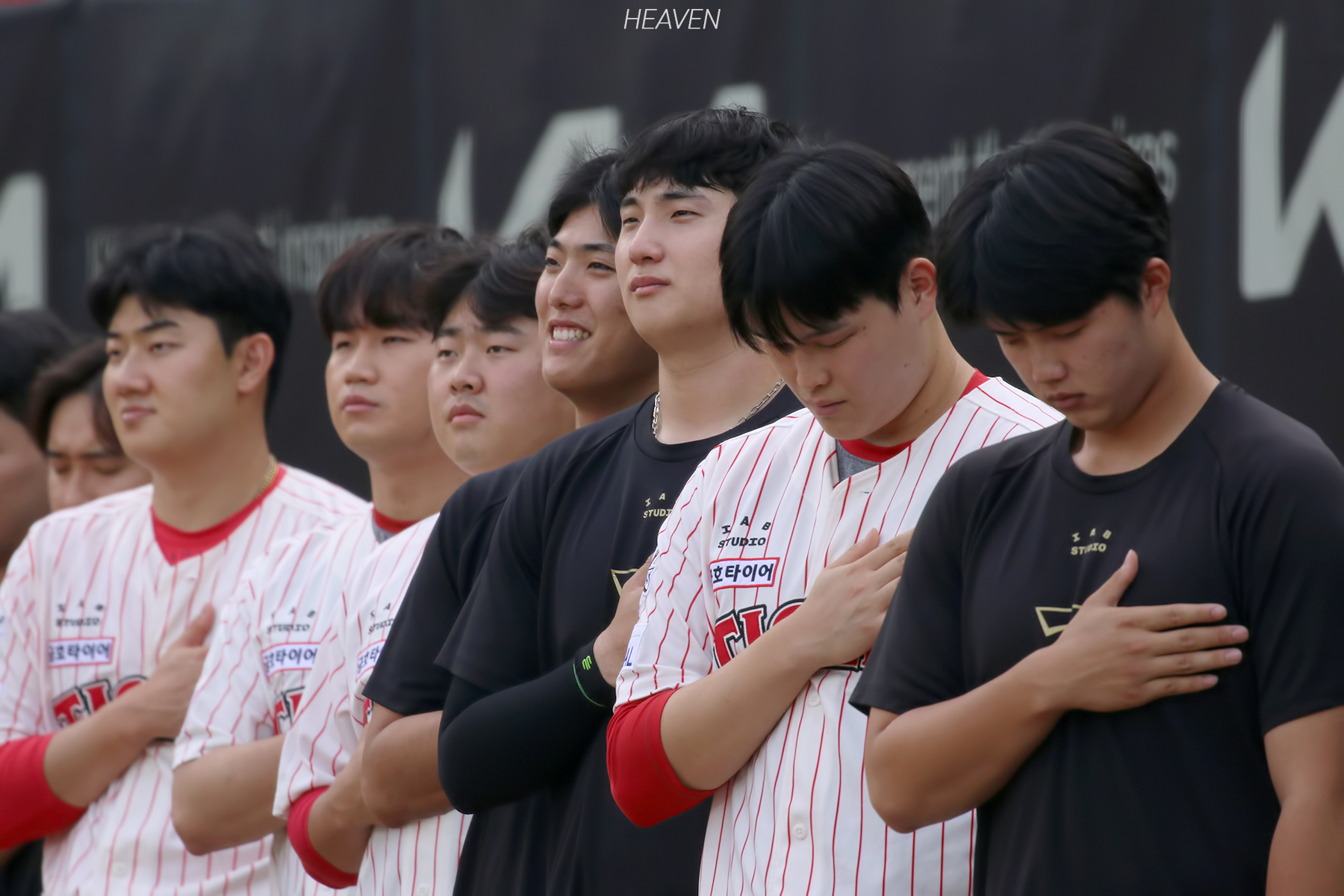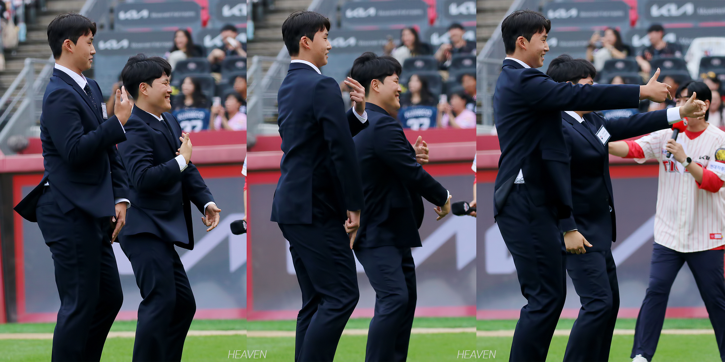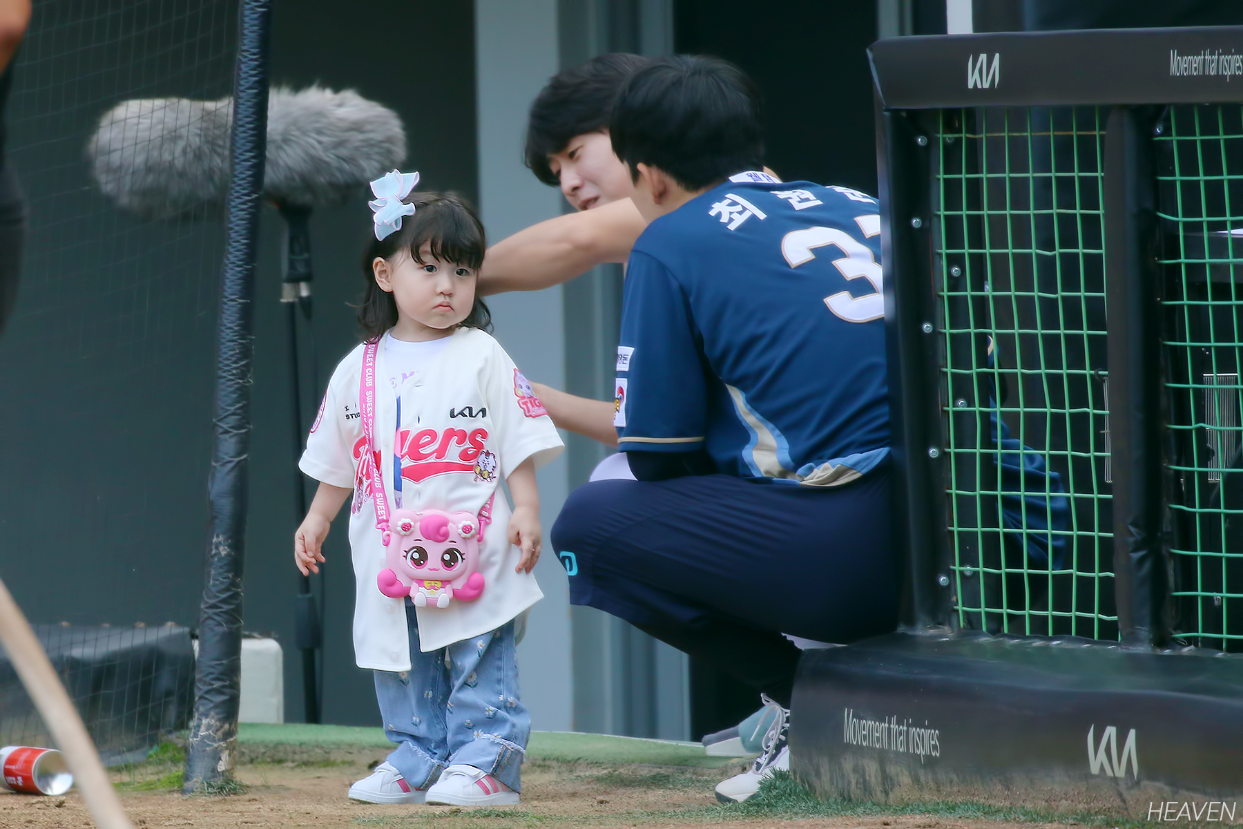 경기 전 그라운드에 나와있던 때때와 이제 다른 팀 선수가 된 원준이