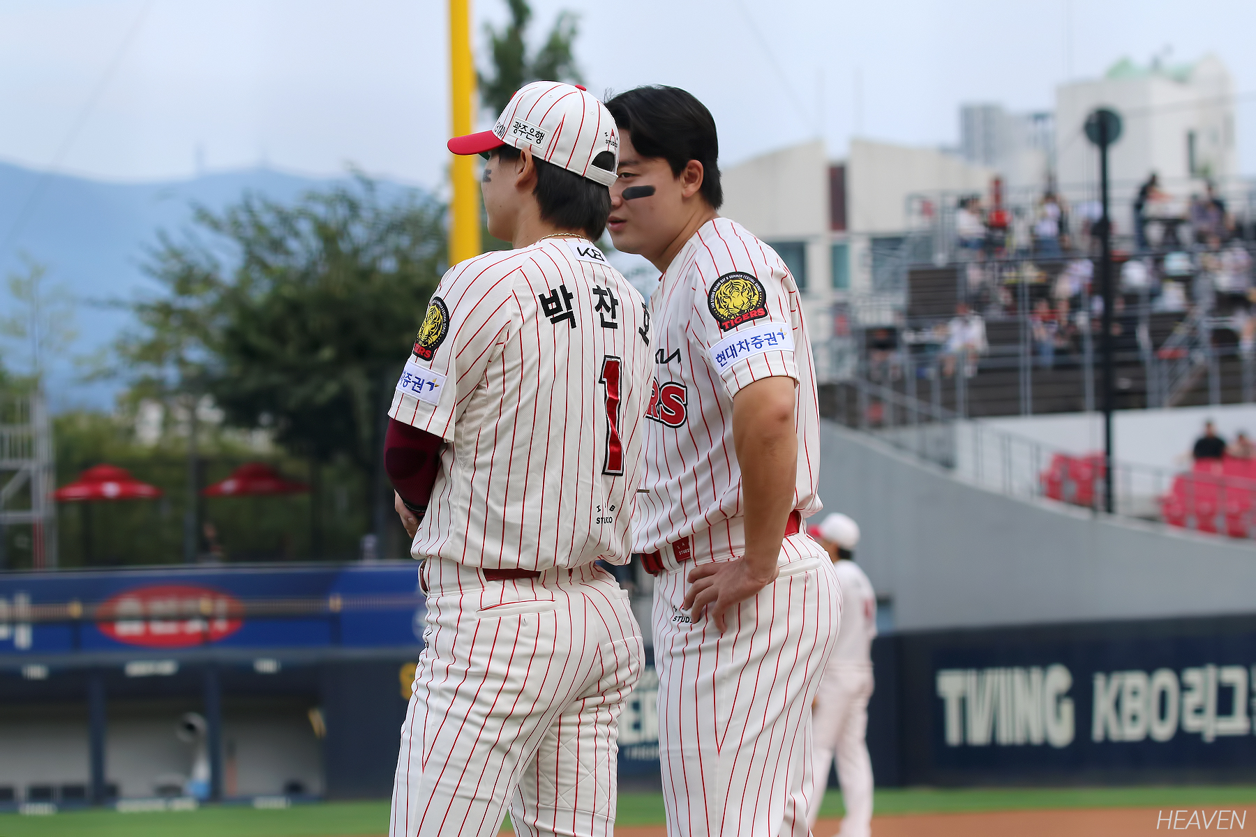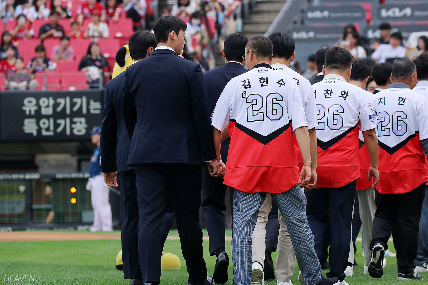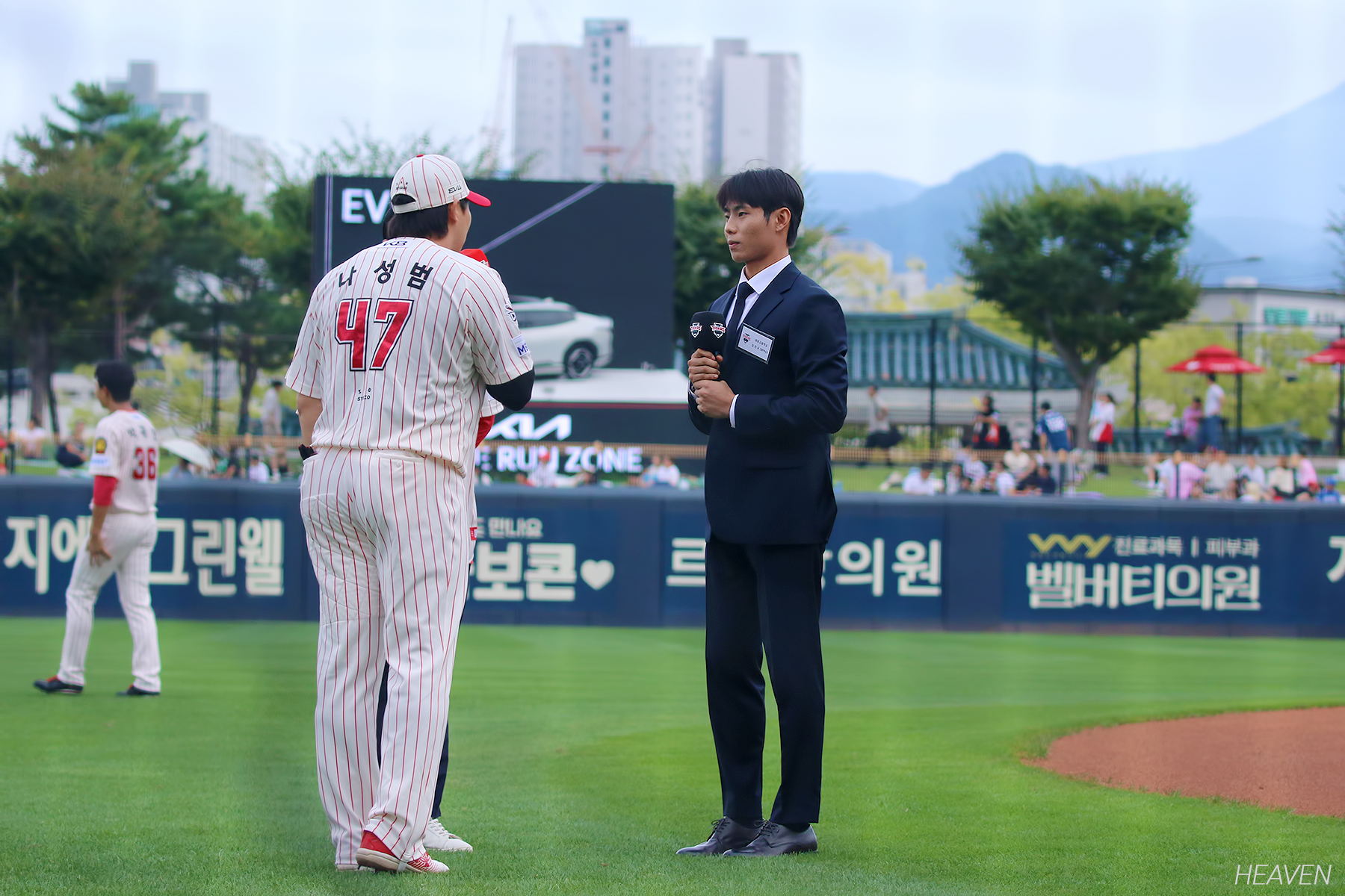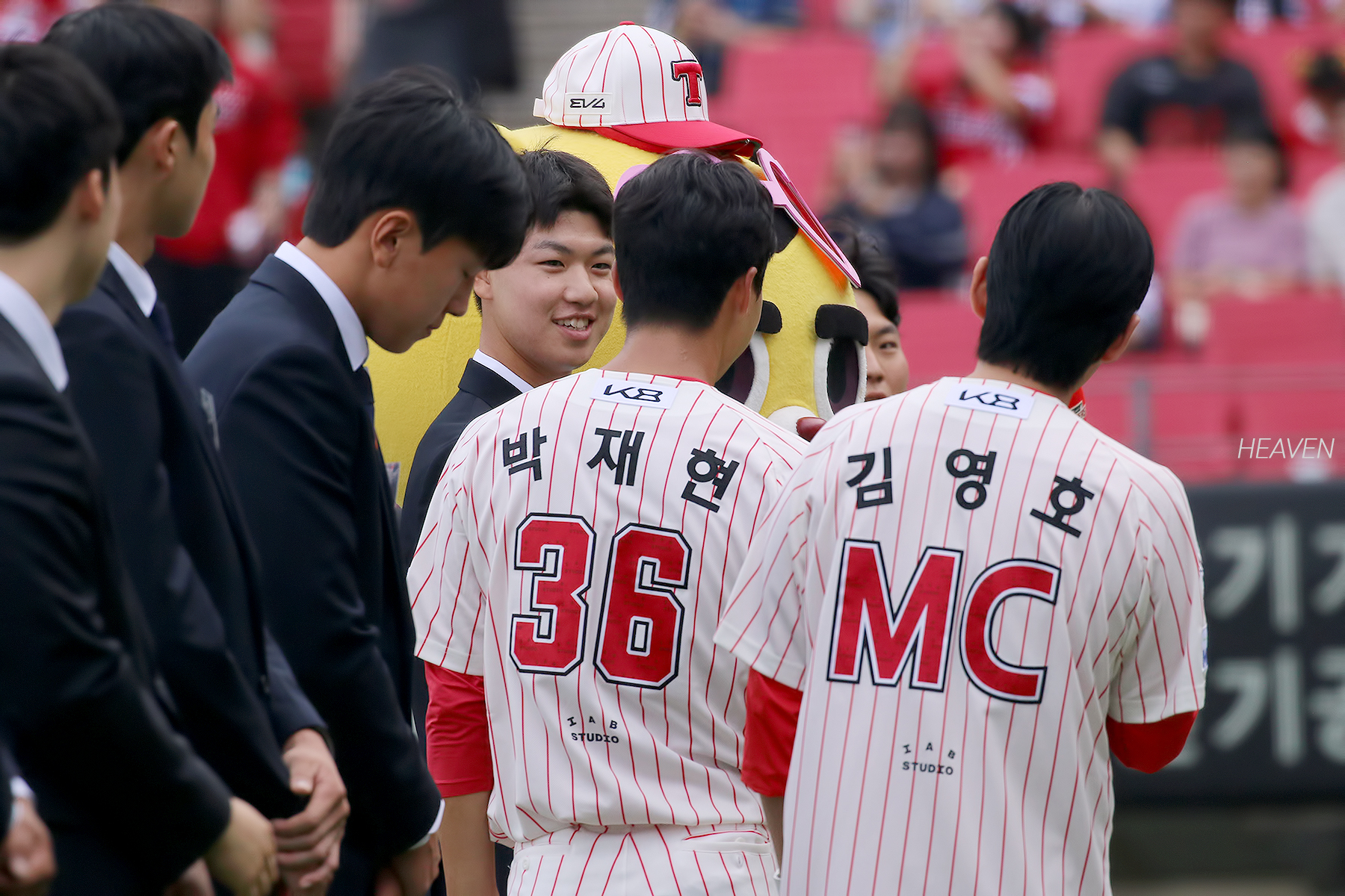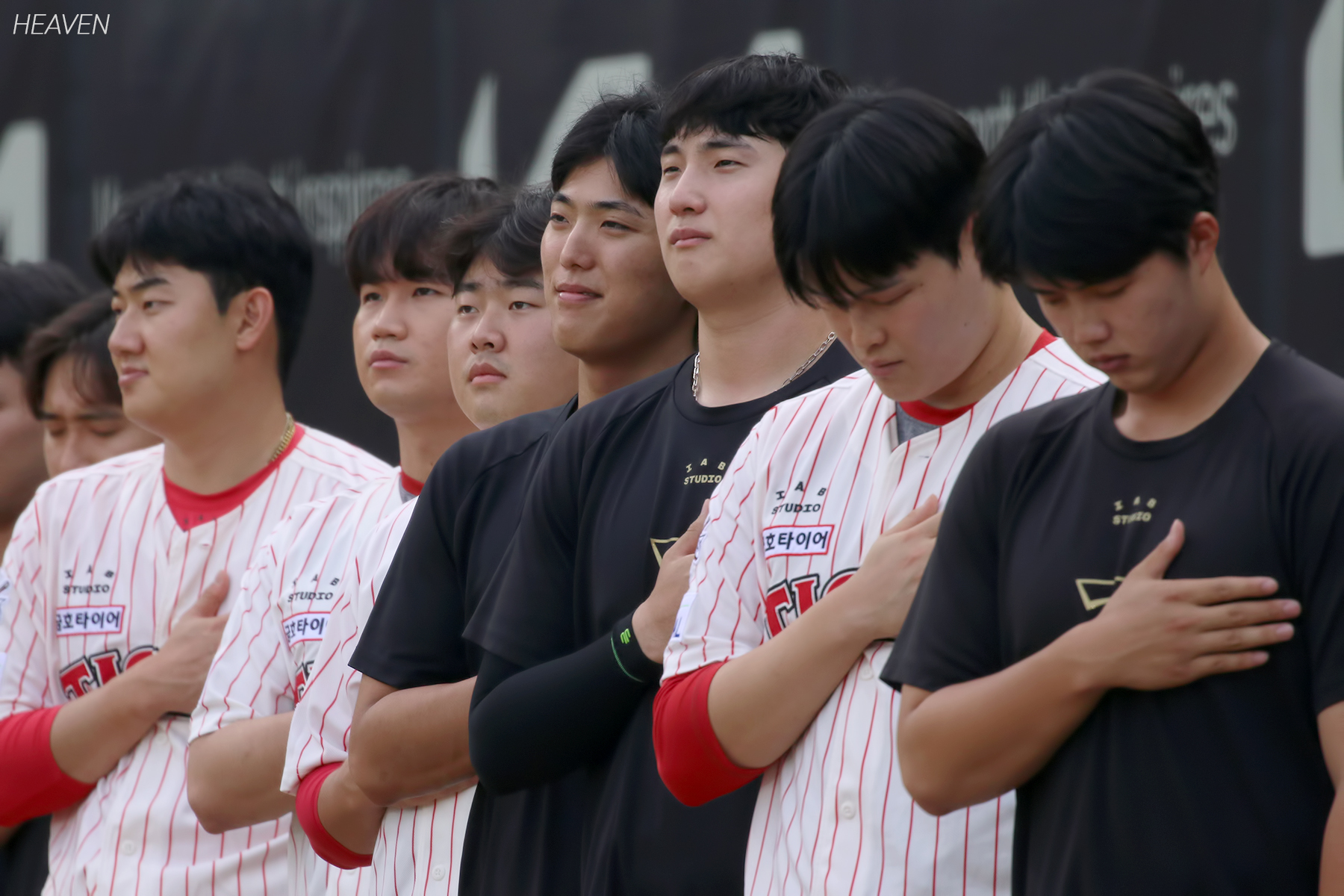 경기 전 그라운드에 나와있던 때때와 이제 다른 팀 선수가 된 원준이